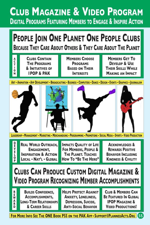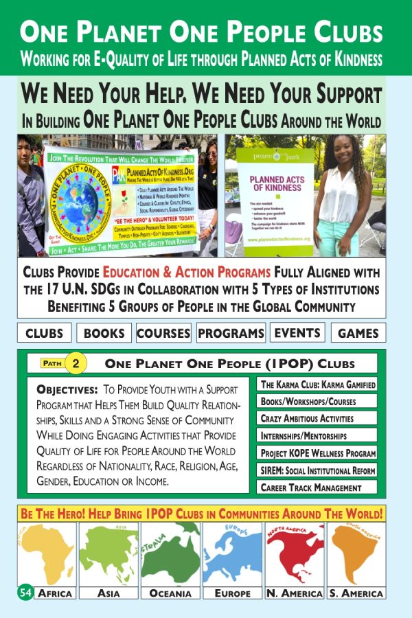 One Planet One People Clubs: Addressing the most pressing problems we face: from climate change, pollution, pandemics, and war to global economic, health, and social inequalities that threaten the Quality of Life for kids, people, and the planet
